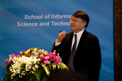 信息科学与技术学院丁峙教授主持了开幕式,并在会上代表信息科学与技术学院筹备小组,向与会嘉宾介绍了信息科学与技术学院的教学科研定位,展望了未来发展的方向和目前已经到位的师资和科研情况。