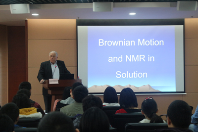 Kurt Wüthrich教授跟同学们分享了其获奖经历、科研工作和生活感悟。他强调兴趣对科学研究的重要性,倡导“快乐科研”与“精彩生活”相结合,鼓励同学们不怕失败、永不服输,勇攀科学高峰。Kurt Wüthrich教授还介绍了核磁共振技术检测蛋白结构的发展历史、研究方法和前沿成果,激起了同学们的极大兴趣。讲座结束后,同学们就时间管理、膜蛋白等话题与Kurt Wüthrich教授进行了热烈的讨论和交流,并合影留念,部分同学还拿到了Kurt Wüthrich教授的亲笔签名。