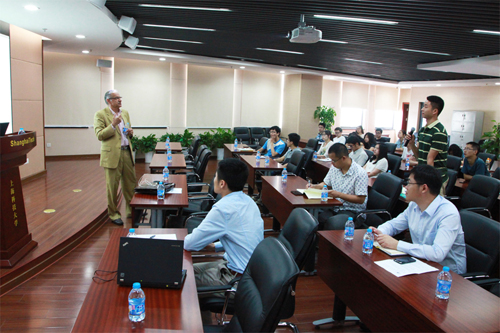 之后,Kambiz Pourrezaei教授为上科大的师生举办了关于生物纳米技术的讲座。他的研究从材料到生命科学领域,学术视野开阔,讲座深入浅出并注重与听众的互动,取得了良好的反响。