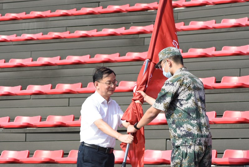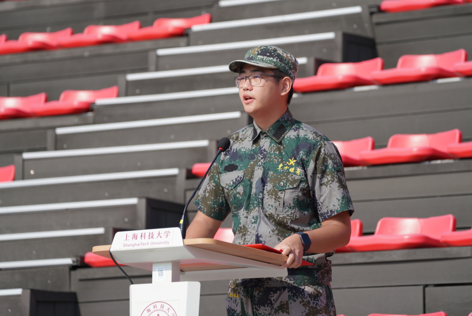 2022级大道书院本科生周申韬代表全体参训新生发言,将抓住军训机会、体悟军人精神,认真训练、磨炼意志,激发青春的力量,书写青春的精彩。