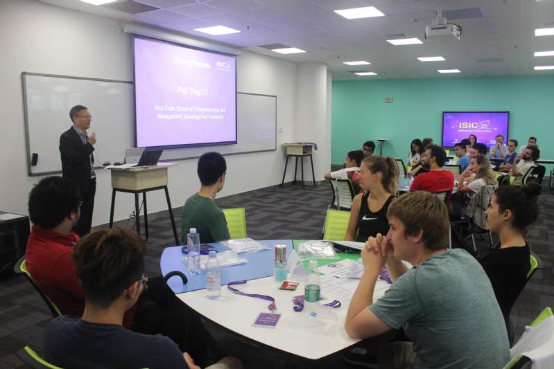 SEM successfully held the International Students Innovation Competition (ISIC 2018) from July 7, 2018 to July 14. Hong Kong University of Science and Technology (HKUST), University of Applied Sciences and Arts Western Switzerland (HES-SO) and ShanghaiTech University were the co-sponsors of this event. Professor Ding Lu, Vice Dean of SEM, hosted the final session on Investor Pitching where the student competitors presented their ideas. SEM Dean Professor Hanming Fang and experts from academic and industrial fields served as judges in this session and made comments on the students' work.