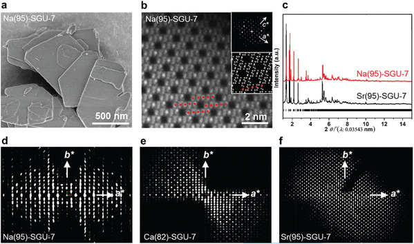 SEM, HAADF images, synchrotron PXRD pattern and 3D EDT data of SGU-7