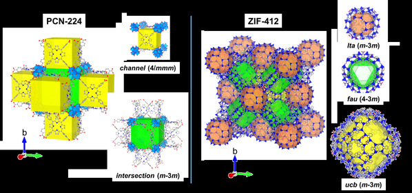 Figure 1. Structure of two MOFs, PCN-224 and ZIF-412