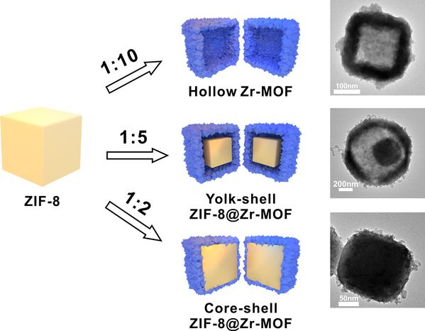 Figure. 3 Preparation of different morphologies (hollow shell, yolk-shell, and core-shell) of MOFs