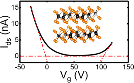 Figure 1: The carrier type of Nb2SiTe4 FET is controlled by the back gate voltage Vg.