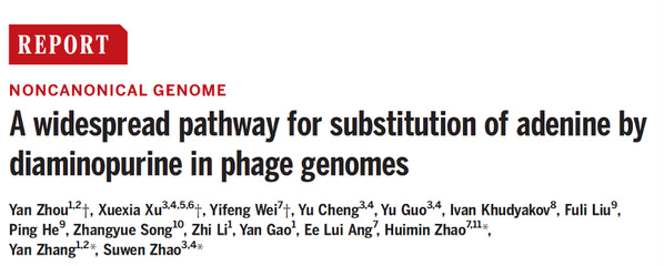 Recently, Dr. Zhao Suwen’s team at the iHuman Institute, collaborating with other scientists from Tianjin University, and the Agency for Science, Technology and Research (A*STAR)/ University of Illinois at Urbana-Champaign (UIUC) have solved a long-standing mystery of Z genome that comprises entirely non-canonical Z-T base pairs instead of canonical A-T base pairs in bacteriophages (Figure 1). They discovered the key enzymes responsible for the synthesis of this non-canonical base pair in dozens of globally widespread phages and further verified the Z genome in one of these phages. This discovery enables the synthesis of Z-DNA on a large scale for a diverse range of applications ranging from phage therapy to synthetic biology to DNA storage. The research is published in Science, available online on April 30, 2021.