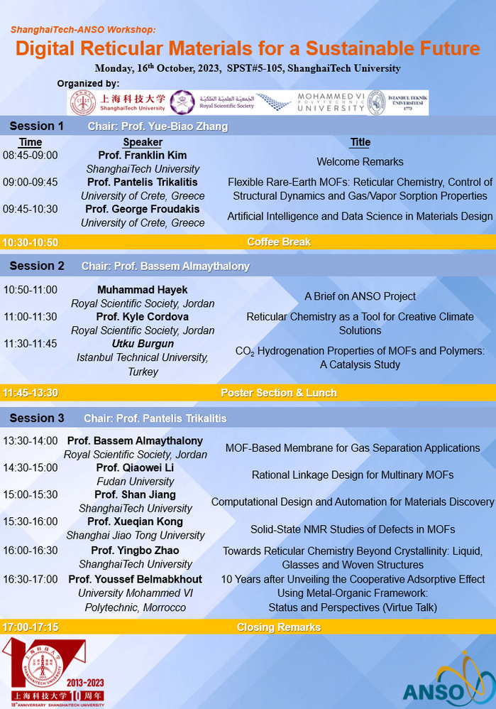 It is worth mentioning that this symposium is jointly supported by the Alliance of International Science Organizations (ANSO). The ANSO-sponsored international workshop has successfully convened four times in different locationss, including Istanbul, Turkey (September 2021), Amman, Jordan (March 2022), Marrakesh, Morocco (October 2022), and Crete, Greece (March 2023). The primary objective of this symposium is to foster stronger scientific research collaborations and exchanges among scientists and engineers working together to develop innovative porous materials specifically designed for carbon capture applications.
