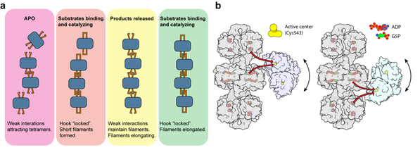(b) Mechanism of substrate channeling facilitated by the metabolic filament