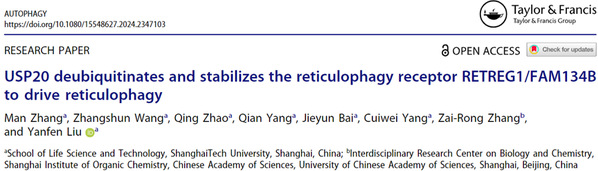 Associate Professor Liu Yanfen’s group in the School of Life Science and Technology (SLST) has been long engaged in the research on the mechanisms of ubiquitination regulation of autophagy and the selective autophagy of the ER, mitochondria, and stress granules. In their recent study, the researchers unveiled a novel regulatory mechanism of ubiquitination in the selective autophagic degradation of the endoplasmic reticulum (ER). The groundbreaking study titled “USP20 deubiquitinates and stabilizes the reticulophagy receptor RETREG1/FAM134B to drive reticulophagy” was published in the journal Autophagy on May 5.